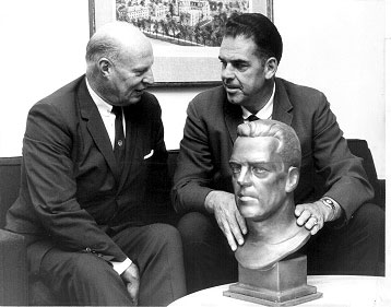 Otto and Paul Brown at Canton, Ohio Pro Football Hall of Fame standing in front of Otto's bust after Paul's introduction speech at Otto's induction. 1965 | ||||||||||