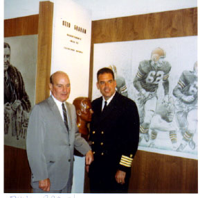 Otto and Paul Brown, his Cleveland coach of ten years seen with pro-football Hall of Fame bust on day of Otto's 1965 induction into HOF. Otto asked Paul to speak and introduce him. 1965 | ||||||||||